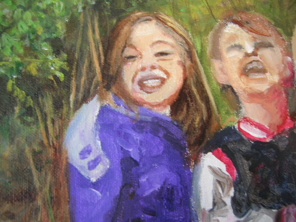 More progress on my painting of three happy kiddos and one mom!
